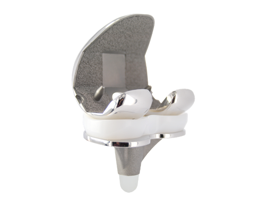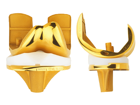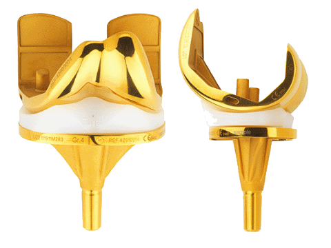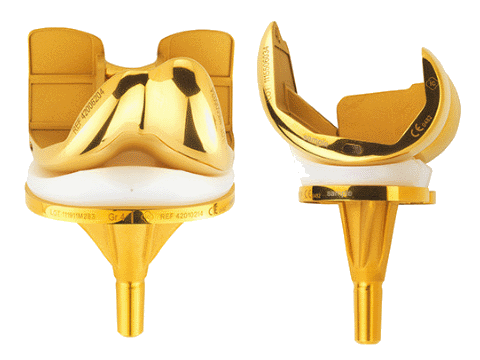 Prothèse de genou plateau mobile à plateau rotatoire ultra congruent avec un revêtement BIOLOY ® hypoallergique.