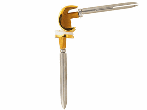 L' ACS® MB SC (SC semi-contraint) offre la possibilité d'extensions de tige par un double cône (adaptateur décalé) à connecter au composant fémoral et tibial , ainsi que des entretoises pour compenser les défauts osseux.